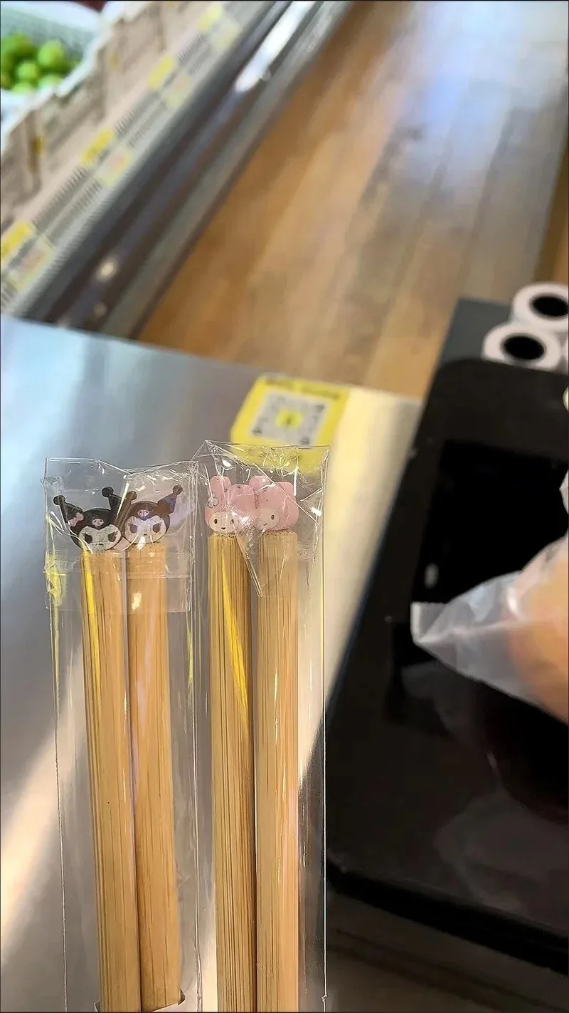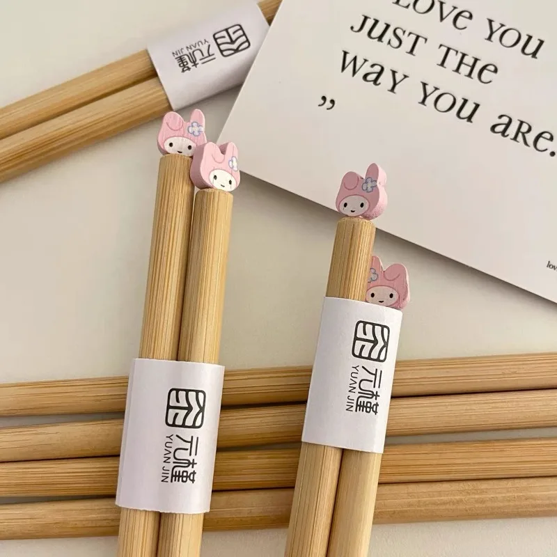 Home Health & Household Kawaii Sanrio My Melody New Chopsticks Household Tableware Simple HelloKitty Health and Environmental Protection Bamboo Products